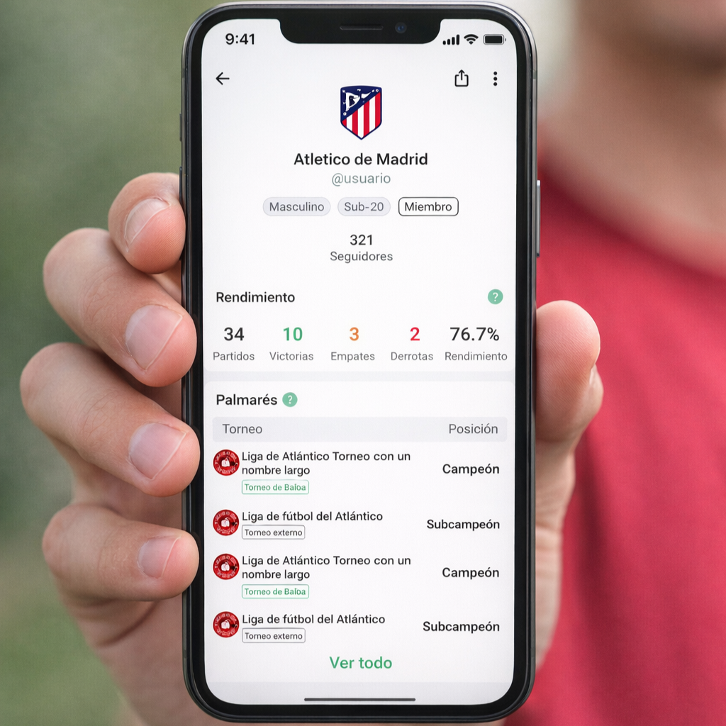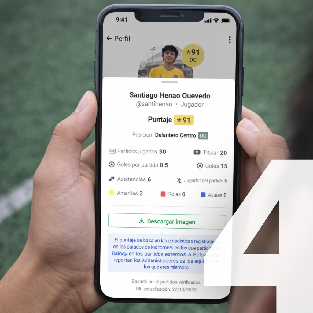 Las estadísticas de tus jugadores se construyen con datos de partidos oficiales en torneos y con la actividad que tu club registra en Baloa.